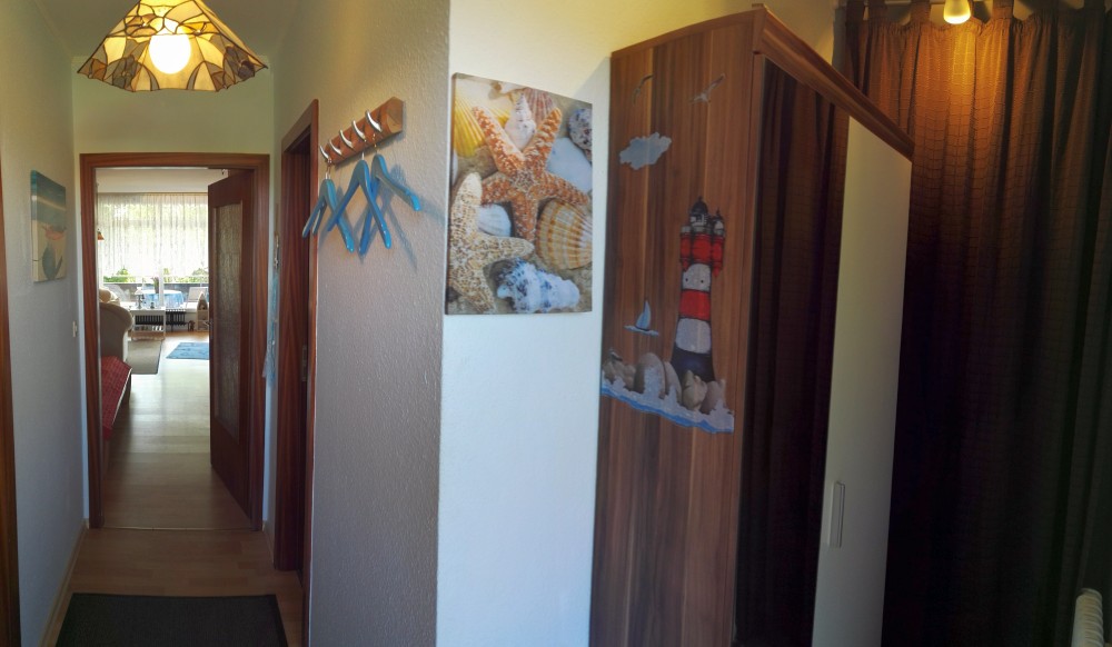 Der Flur ist mit einem Schrank und einer Garderobe versehen. Putzmittel, Staubsauger usw. haben hier ebenfalls ihren Platz.